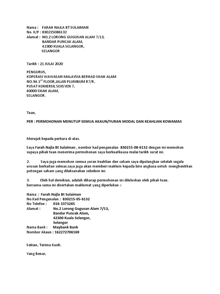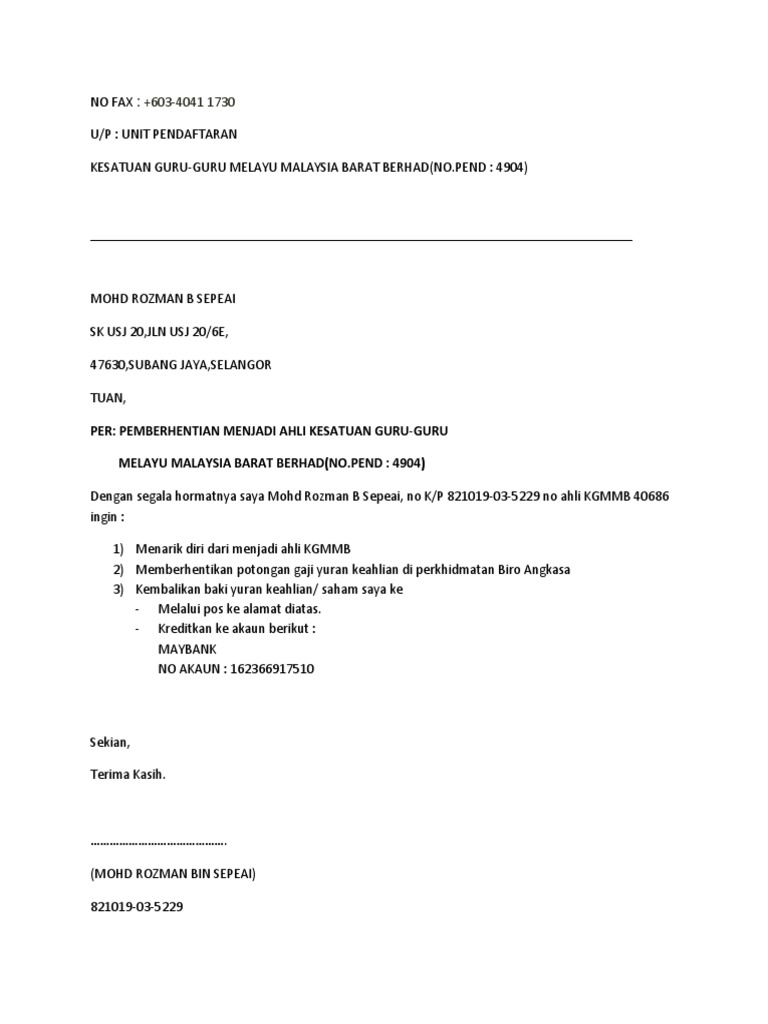 Contoh Surat Berhenti Potogan Angkasa Dax Sawyer